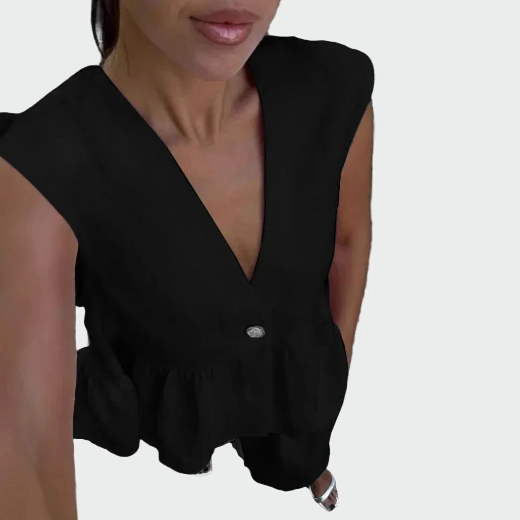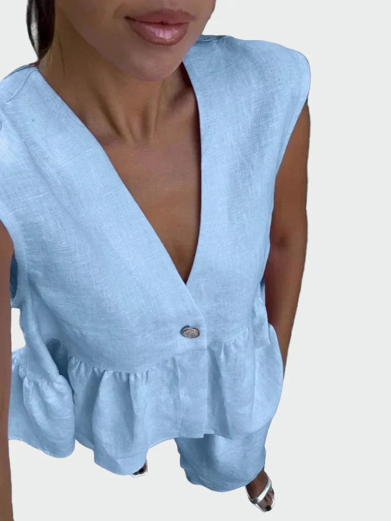 Give a light yet elegant feel to your style with this fluid and airy set. Its modern design combines comfort and finesse, making it ideal for both everyday looks and more special occasions. The lightweight fabric provides coolness and ease of movement, while its sleek line adds femininity and style.